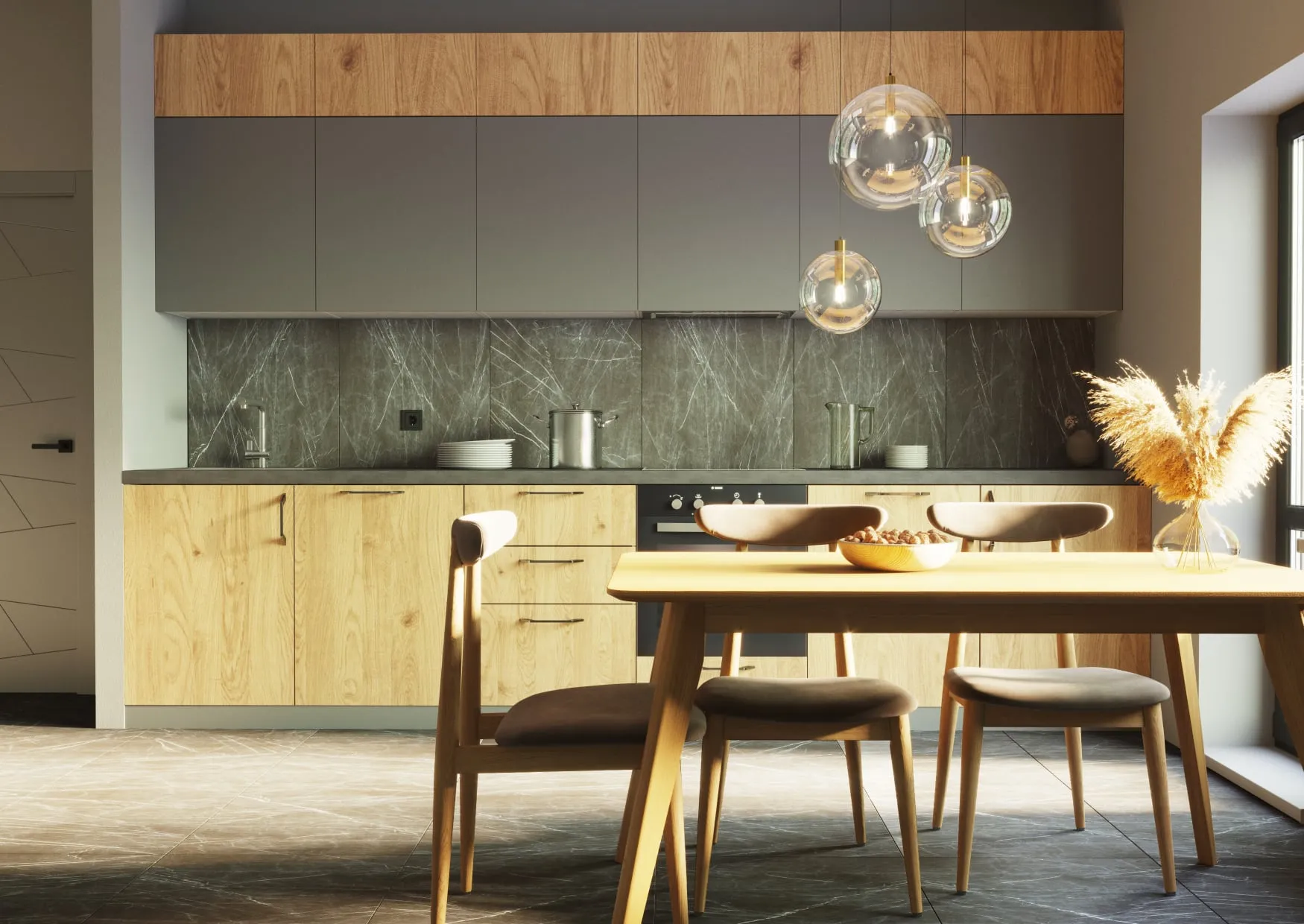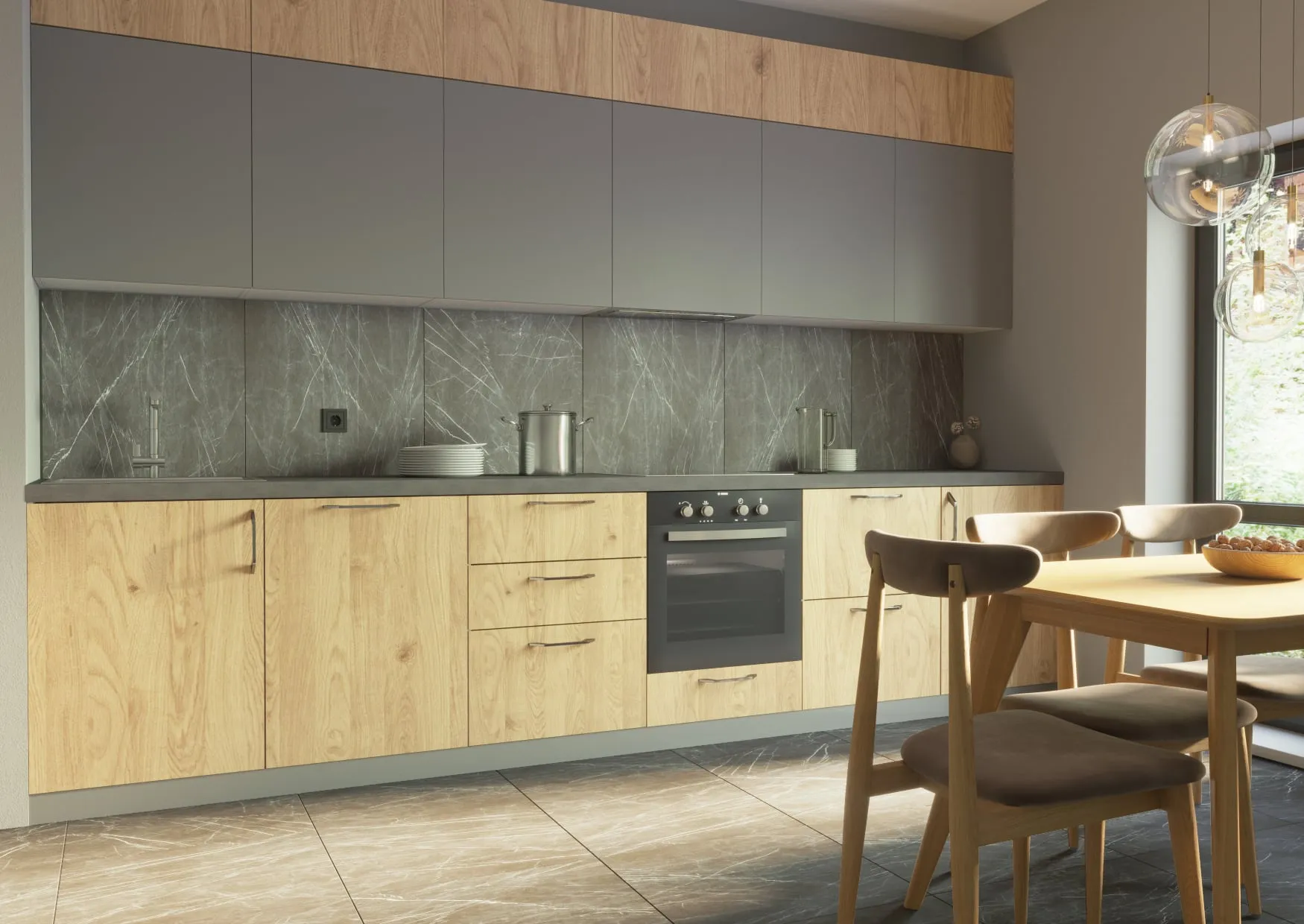 Фасады: ДСП-2 Серый пыльный-18./ ДСП-2 Дуб медовый -18 верт.
