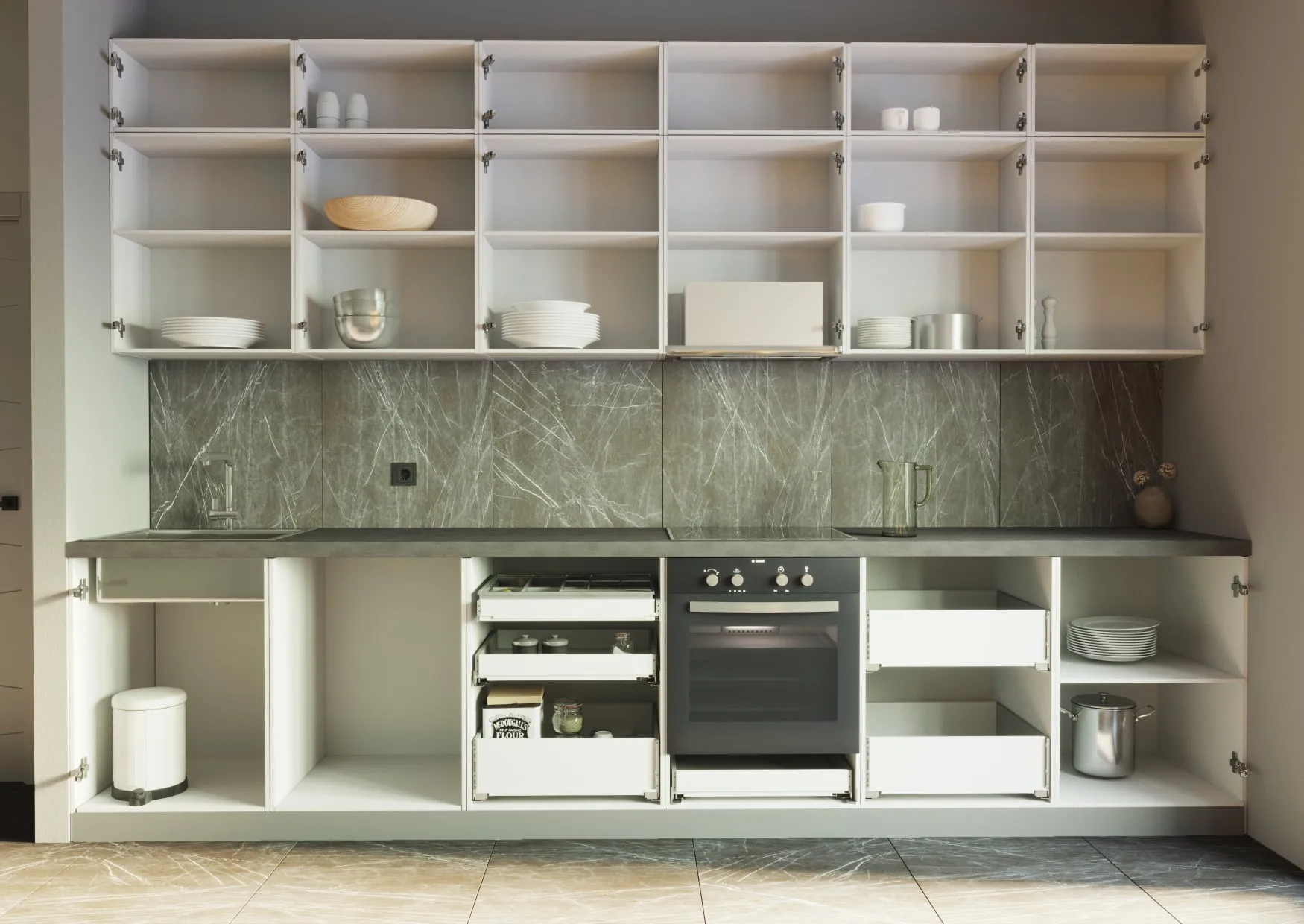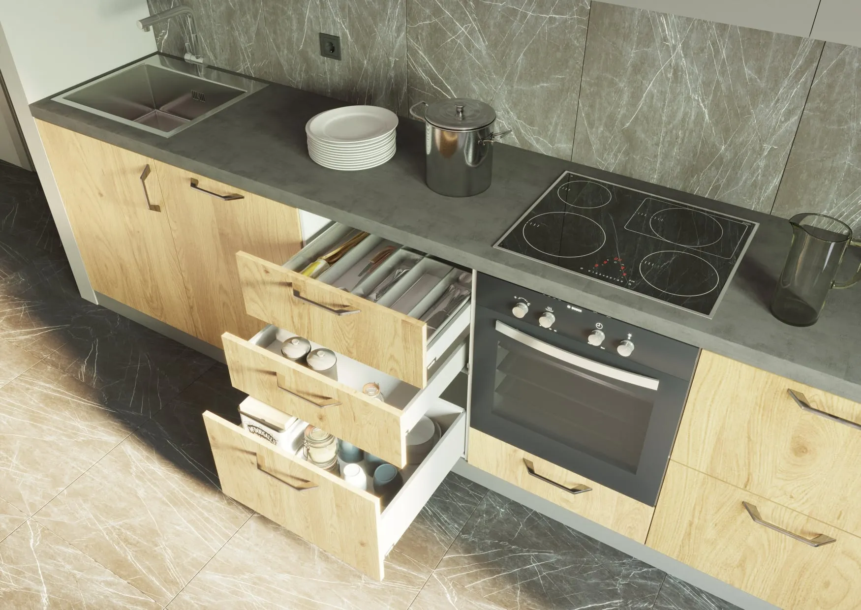 Механизмы открывания: петли Intermat (Hettich), направляющие Quadro 25 (Hettich), подъёмный механизм газ лифты (Rejs).