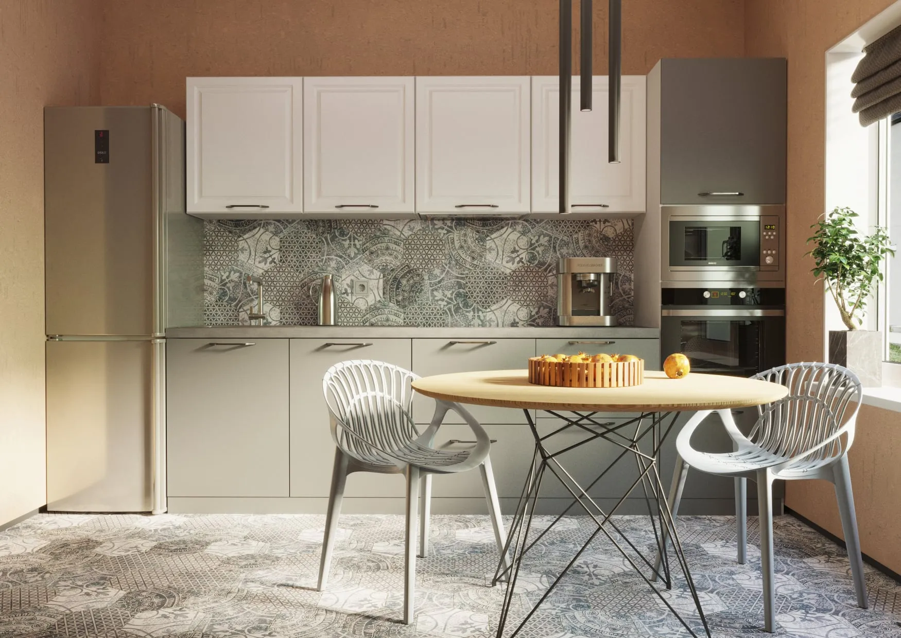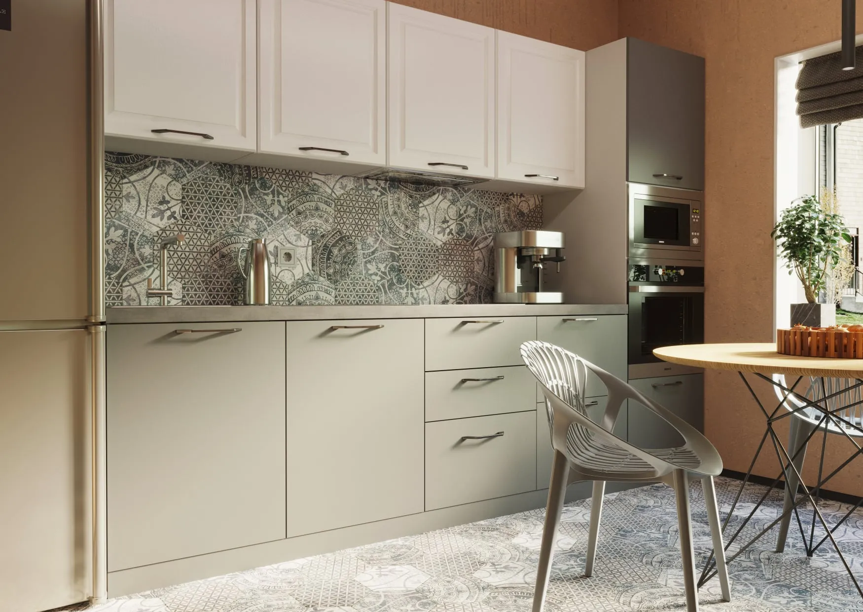 Фасады: Эрден ПВХ Белый PET/ ДСП-2 Серый пыльный-18.