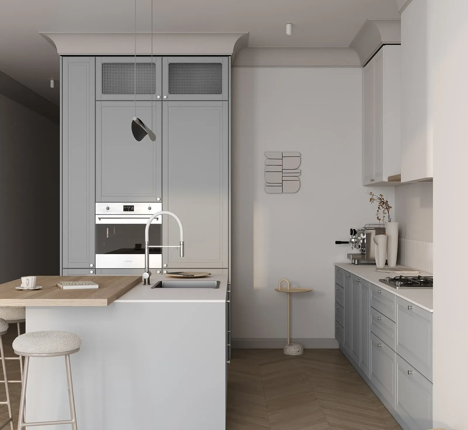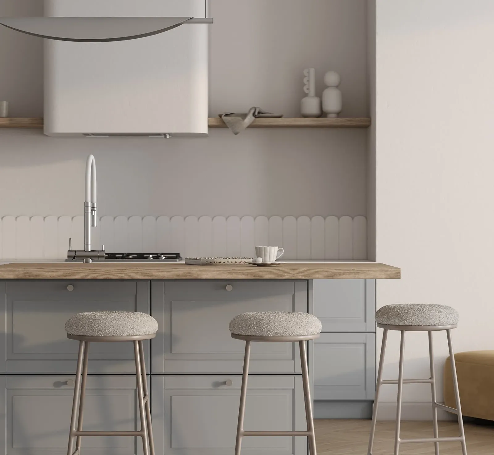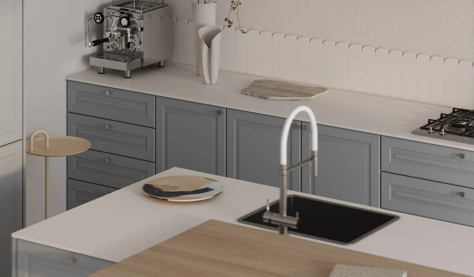 ФАСАДЫ Фаби (МДФ/ПВХ), цвет NCS S 2010-B10G Матовый / NCS S 0500-N Матовый СТОЛЕШНИЦА Компакт-плита, 12 мм / пластик HPL, 38 мм