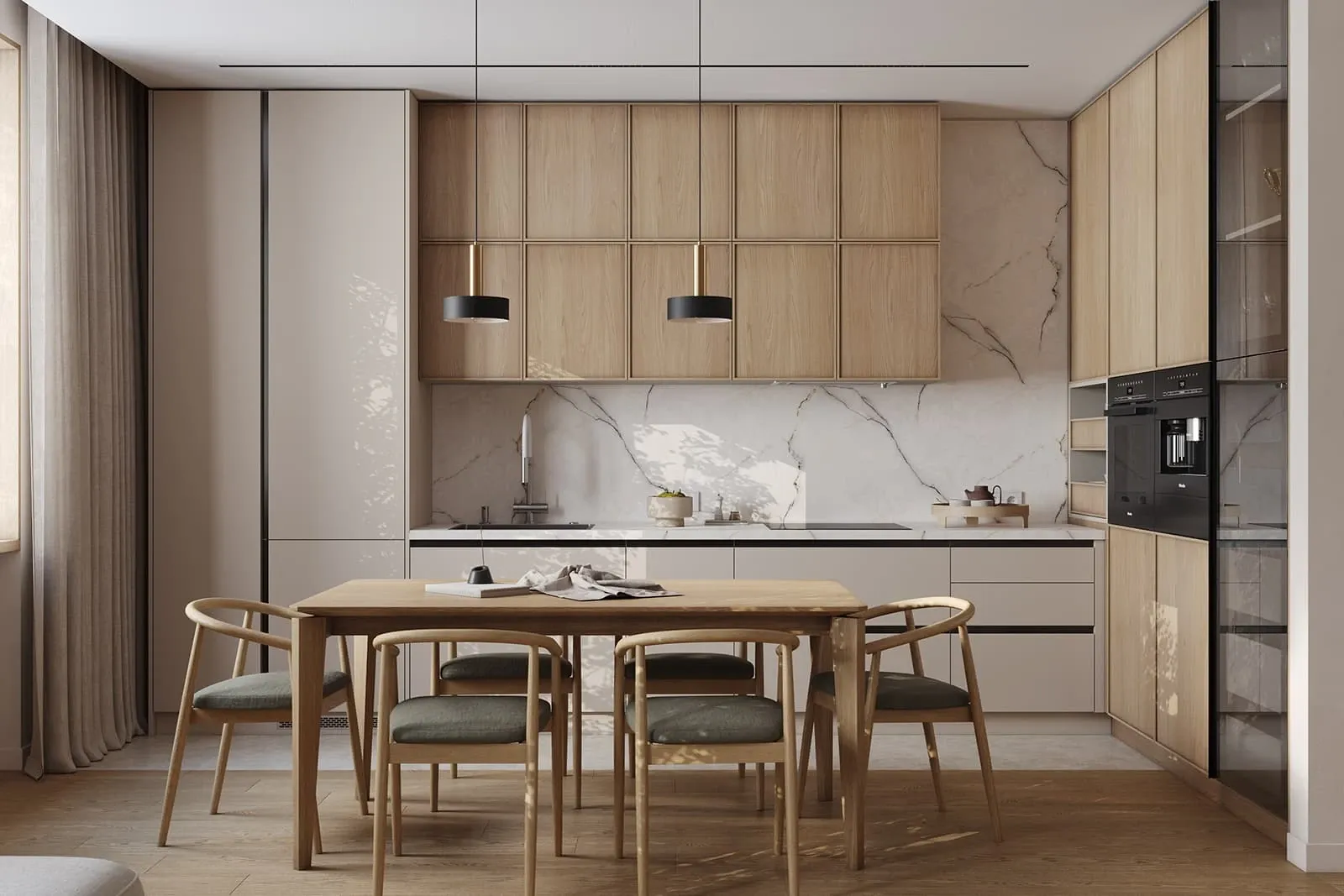 Фасады: ЛМДФ PRIME, цвет Шелковый / Т432В Шпон дуба, цвет #189 (воскобейц Белый)