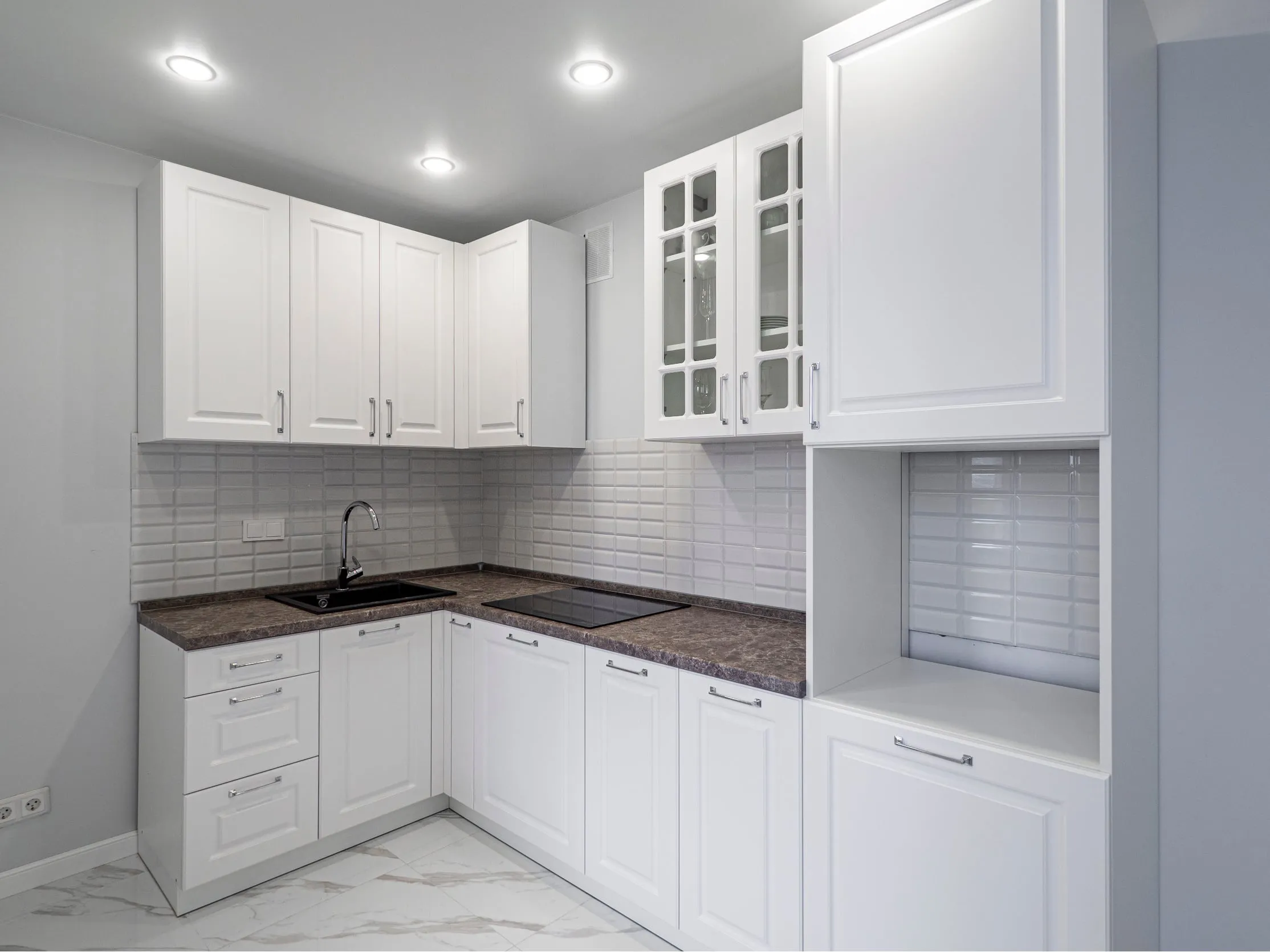 Фасады: МДФ Эмаль, Система Белый супермат; Лонгфорд Белый супермат