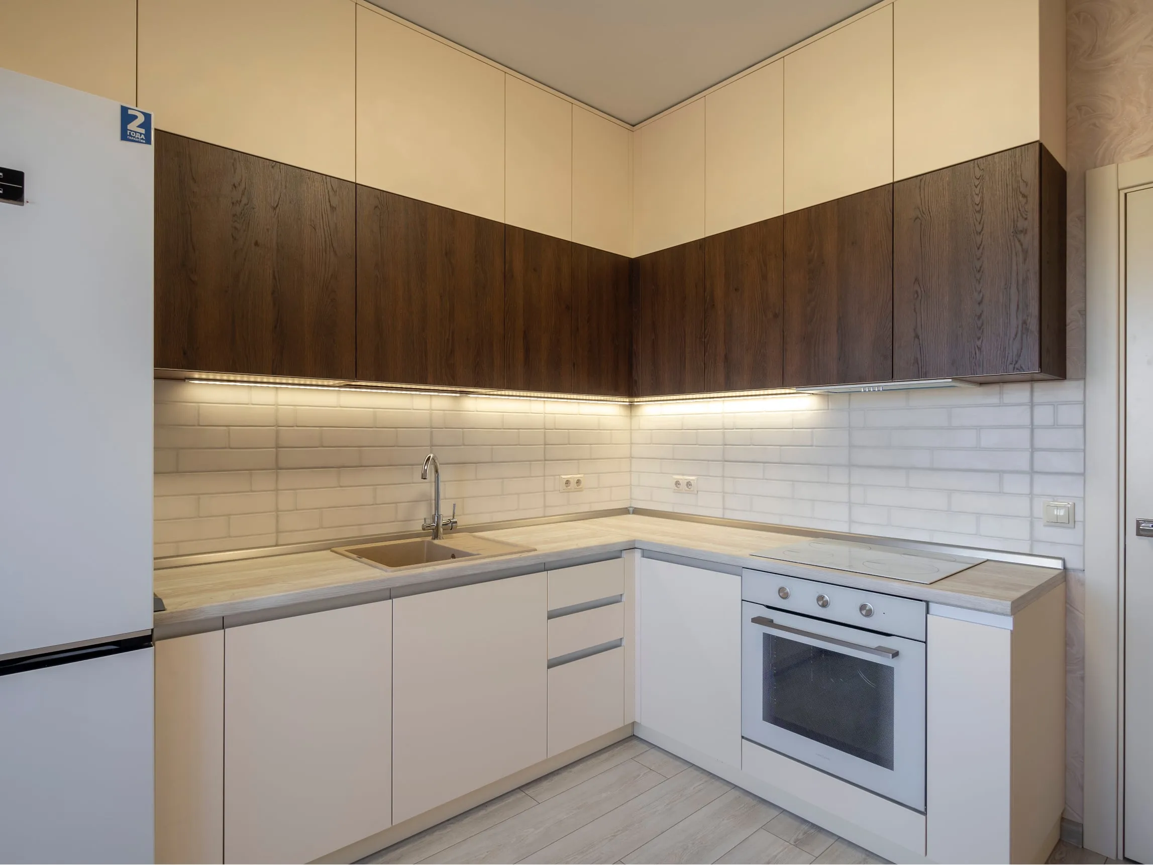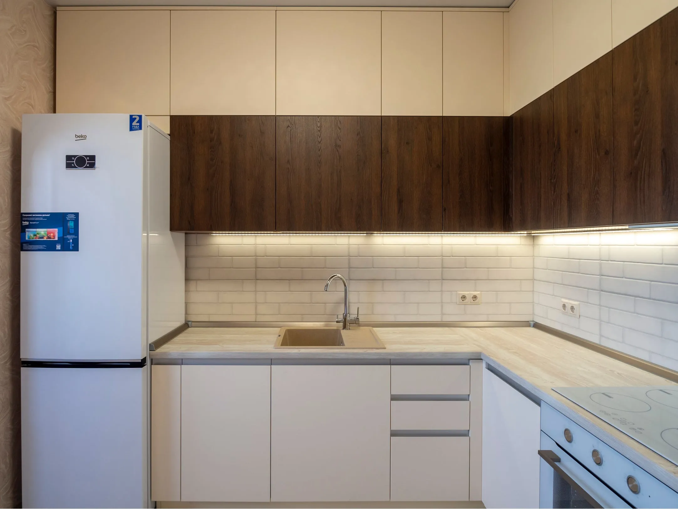 Фасады: ЛДСП Тимбер Кестен / МДФ эмаль, Система, Жасмин