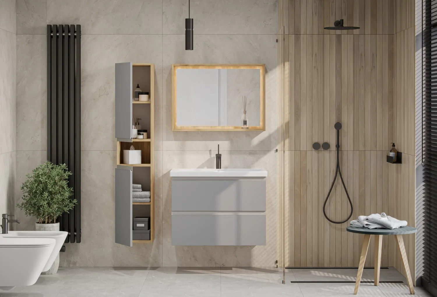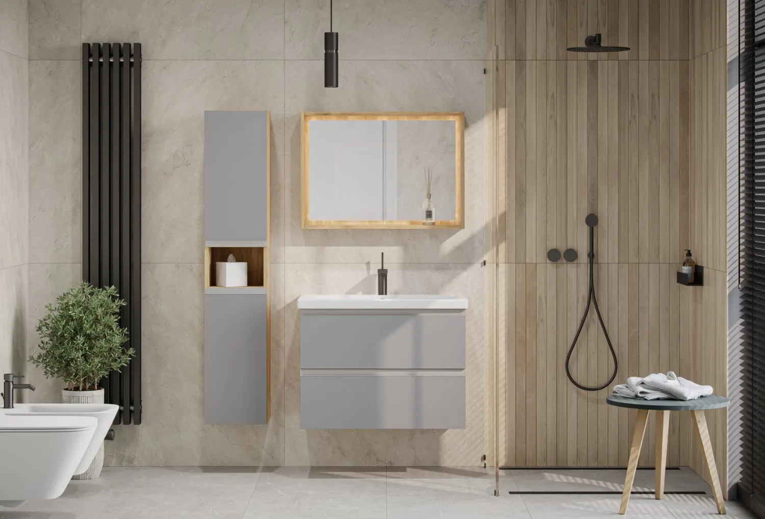 Корпус: ЛДСП Дуб Медовый Внутренний ящик Дуб Сонома, вырез под сифон Boyard серый